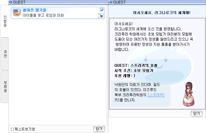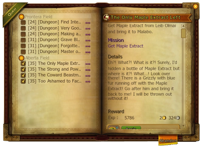 The original quest log windows in RO.